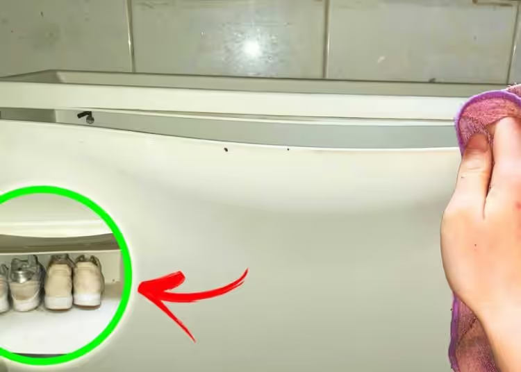 Geben Sie also einfach 2 Esslöffel Natron in eine Schüssel mit heißem Wasser, tauchen Sie ein Tuch in die entstandene Lösung und wischen Sie den Schuhschrank mehrmals aus. Anschließend mit einem gut ausgewrungenen Tuch abspülen und gründlich trocknen.