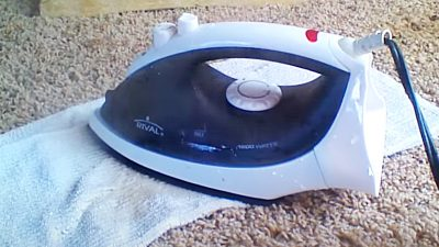 Materialien zum Reinigen eines Teppichs mit einem Dampfbügeleisen: