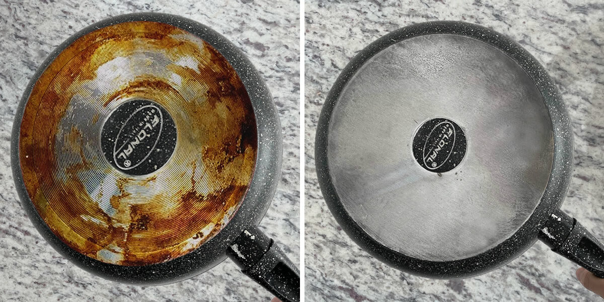 Auch bei den besten Köchen kann es ab und zu passieren, dass eine Pfanne anbrennt . Ein kleines Versehen oder ein nicht genau befolgtes Rezept genügt und auf dem antihaftbeschichteten Teil der Pfanne bildet sich eine dunkle Schicht , die sich scheinbar nicht mehr entfernen lässt. Manchmal haben wir die Lösung zu Hause und wissen nicht, wie wir sie anwenden sollen. Bevor Sie erwägen, die verbrannte Pfanne wegzuwerfen, versuchen Sie es mit den unten aufgeführten Methoden, um sie zu retten und ihr ursprüngliches Aussehen wiederherzustellen. Essig Dieses Naturprodukt ist dank seiner Säure ein wertvoller Verbündeter. Geben Sie etwas Essig in die Pfanne und schalten Sie den Herd ein. Bei schwacher Hitze zum Kochen bringen und einige Minuten warten. Die verbrannten Bruchstücke lösen sich langsam vom Boden. Nehmen Sie die Pfanne vom Herd, lassen Sie sie abkühlen und entfernen Sie verbrannte Rückstände mit einem Spatel oder Schwamm. Essig und Backpulver Dieser Tipp eignet sich besonders gut für Töpfe und Pfannen aus Stahl, Gusseisen oder Keramik. Die Kombination aus Essig und Backpulver, die zur Haushaltsreinigung verwendet wird, hilft dabei, verbrannte Rückstände aus Töpfen und Pfannen effektiv zu entfernen. Gießen Sie eine Tasse Wasser in die Pfanne und erhitzen Sie sie. Eine Tasse Essig hinzufügen und bei schwacher Hitze einige Minuten kochen lassen. Vom Herd nehmen und zwei Esslöffel Backpulver hinzufügen. Warten Sie, bis die Sprudelreaktion beendet ist, und entsorgen Sie das Wasser nach einigen Minuten. Reinigen Sie die Pfanne mit einem Scheuerschwamm und fügen Sie etwas trockenes Backpulver hinzu, um sicherzustellen, dass Sie alle Rückstände entfernen. Coca-Cola So seltsam es auch erscheinen mag, Coca-Cola hat eine leicht ätzende Wirkung, die sehr nützlich ist, um verbrannte Pfannen wiederherzustellen. Gießen Sie es in die Pfanne, bis es den Boden bedeckt, und erhitzen Sie es dann bei schwacher Hitze. Bürsten Sie etwa eine Minute lang mit steifen Borsten und entfernen Sie alle Rückstände. Achten Sie dabei darauf, sich nicht zu verbrennen. Nachdem Sie nun wissen, wie Sie eine verbrannte Pfanne retten können , werden Sie es sich sicher noch einmal überlegen, bevor Sie sie wegwerfen und wieder wegwerfen.