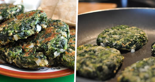 Zutaten: 400 Gramm Spinat (gefroren oder frisch), 2 Eiweiß, 60 Gramm gehackte Zwiebeln, 110 Gramm geriebener Käse, 110 Gramm geriebenes Vollkornbrot, 1 Teelöffel schwarzer Pfeffer, 1/2 Teelöffel Knoblauchpulver und Salz .