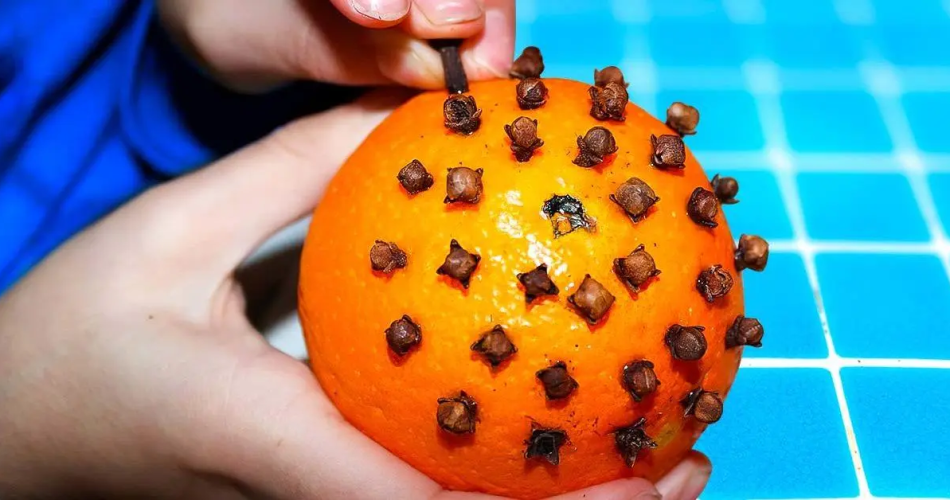 Allerdings benötigt unser Trick nur eine Orange und ein paar Segmente , die die Oberfläche der Orange bedecken können. Es ist ein Kinderspiel, Nelken in eine Orange zu stecken und von dieser Geschmackskombination begeistert zu sein! Der würzige Geruch von Nägeln, gemischt mit dem scharfen Duft von Orange, entführt Sie in die Welt der Düfte und Sinne.