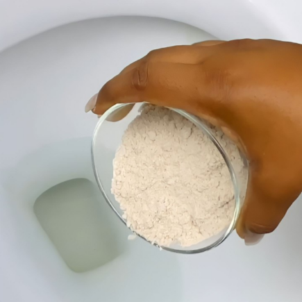 Es handelt sich um Mehl und weißen Essig. Zunächst müssen Sie Mais- oder Weizenmehl nehmen und es in eine kleine Schüssel gießen. Die Mehlmenge hängt davon ab, wie schmutzig Ihr Badezimmer ist. Sie können etwa 8 Esslöffel oder mehr verwenden. Nachdem Sie das Mehl zubereitet haben, können Sie beginnen. Achten Sie dabei darauf, eine Maske zu tragen, um das Mehl vor dem Einatmen zu schützen.