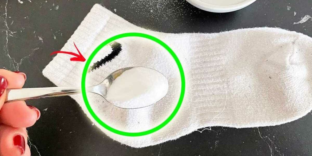 Reiben Sie die nassen Socken mit zwei Esslöffeln Backpulver ein, lassen Sie sie ein paar Minuten einwirken und reiben Sie sie dann mit einer halben Zitrone ein.