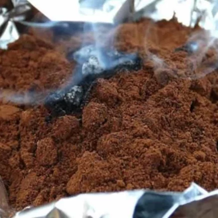 Lassen Sie sie einfach in der Sonne trocknen und legen Sie sie, wenn sie trocken oder trocken sind, in einen Behälter, auf dessen Boden Sie ein Blatt Aluminiumfolie legen . Verbrennen Sie Ihren Kaffeesatz vorsichtig mit einem Streichholz oder Feuerzeug.