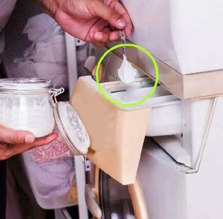 Wir möchten mit Ihnen über Backpulver sprechen, das ein sehr wirksames Flecken- und Entkalkungsmittel ist . Geben Sie zur Verwendung eine halbe Tasse des weißen Pulvers in den Korb der Waschmaschine.
