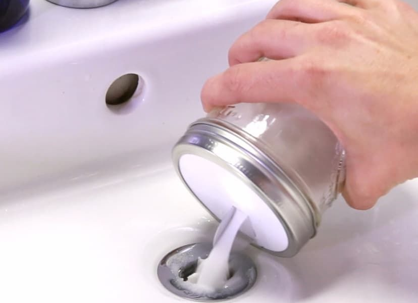 4. Dann warmen Essig in den Abfluss geben und ein paar Minuten wirken lassen.