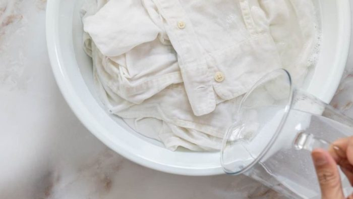 Eine Möglichkeit , sonnenvergilbte Kleidung aufzuhellen, ist die Verwendung von Zitronensäure. Wir sprechen konkret von einer ökologischen und gleichzeitig biologisch abbaubaren Verbindung, die reich an aufhellenden und reinigenden Eigenschaften ist. Wie kann in diesen Fällen interveniert werden? Es ist einfach, 150 Gramm Zitronensäure in einem Behälter mit 1 Liter Wasser aufzulösen und von der Sonne vergilbte Kleidung einzuweichen. Diese werden einige Stunden lang einweichen. Und nach dieser Zeit müssen Sie nur noch abspülen und trocknen lassen.