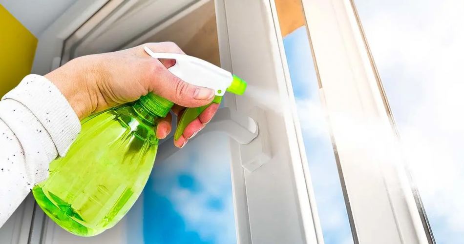 Besprühen Sie die Fensterrahmen mit Essig