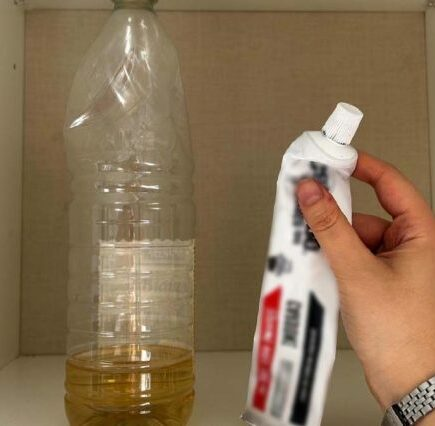 Sie benötigen ein Glas weißen Essig, 1 Finger klassische Zahnpasta, 1 Zimtstange und ein kleines Glas Bodenreiniger . Befolgen Sie dann diese Schritte, um Ihr Produkt zusammenzustellen: