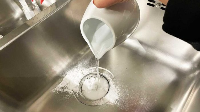 Sie werden feststellen, dass sich aufgrund der sprudelnden chemischen Reaktion zwischen Essig und Backpulver ein wenig Schaum bildet und Sie ein „Sprudeln“ spüren. Diese Reaktion wird Ihnen helfen, den Abfluss zu reinigen. Zum Schluss können Sie sehr heißes Wasser einfüllen, um alle Rückstände noch weiter aus dem Abfluss zu spülen.