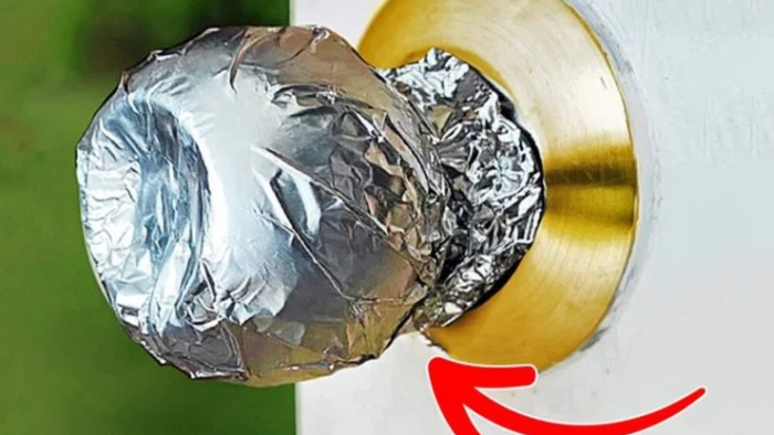 Wickeln Sie nun den Griff oder Knauf mit Alufolie ein, sodass diese vollständig bedeckt sind.