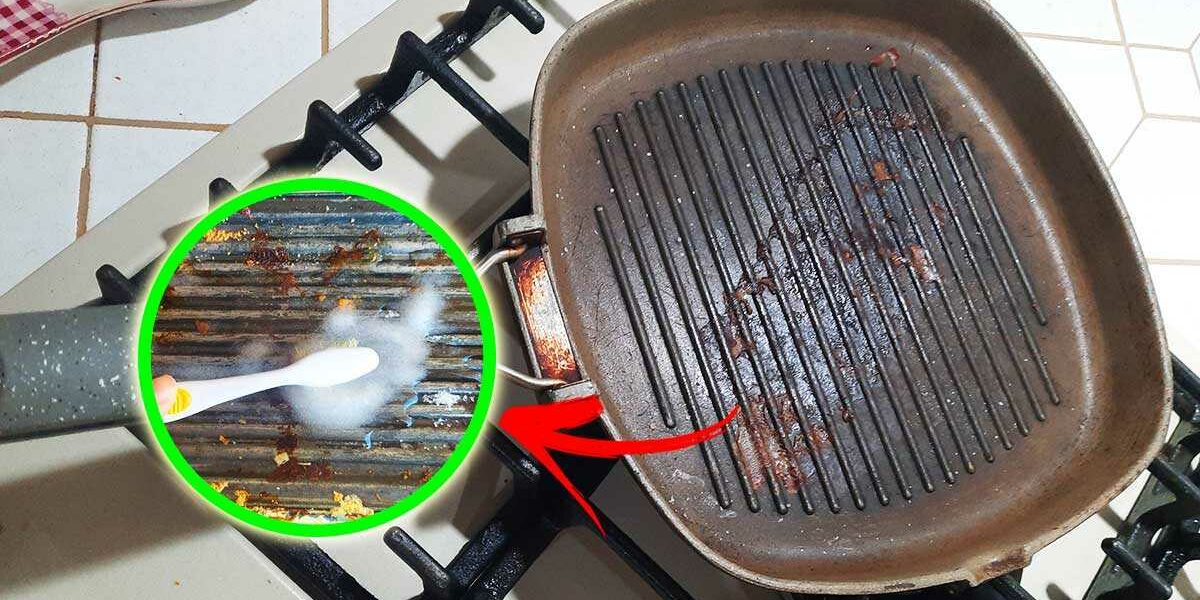 Mischen Sie eine Handvoll Backpulver mit Wasser, bis eine Art pastöse Masse entsteht, geben Sie diese dann auf die Grillkruste und lassen Sie sie eine Weile einwirken. Abschließend immer sanft mit einem Schwamm abreiben und ausspülen! Die Einlagen werden nichts weiter als eine schlechte Erinnerung sein!