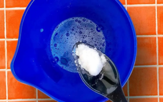 Wenn die Wände fertig sind, bereiten Sie Ihr Reinigungsmittel vor. Dazu benötigen Sie heißes Wasser, Spülmittel und einen Esslöffel Backpulver.