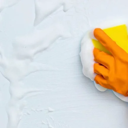 Wischen Sie die Wand mit einem anderen sauberen, feuchten Tuch ab und spülen Sie sie ab.
