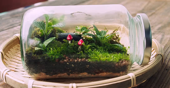 Das Konzept eines Terrariums ist einfach: Es handelt sich um eine Sammlung kleiner Zierpflanzen , die in einer geschlossenen Umgebung wachsen. Der Behälter muss transparent sein und eine große Öffnung haben, um den Zugang zu den Pflanzen zu ermöglichen.