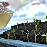 4. Befruchten Sie die Sämlinge mit der erhaltenen Lösung: Gießen Sie <>/<> Teelöffel auf die Basis jedes Sämlings. Achten Sie darauf, es nicht zu übertreiben! Vergessen Sie nicht, dass die Pflanzen nach dem Gießen gedüngt werden müssen (auf keinen Fall auf trockenem Boden)!