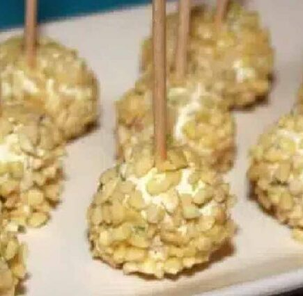 Rollen Sie die Käsebällchen in den Mandelwürfeln, um sie zu umhüllen und kompakter zu machen.